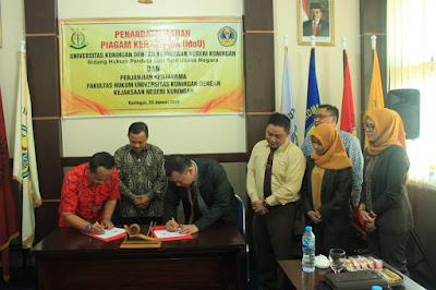 Rektor Uniku, Dr. H. Dikdik Harjadi, M.Si. mengungkapkan, kerjasama dengan Kejaksaan Negeri Kuningan ini akan memperkokoh eksistensi dan peran Fakultas Hukum Uniku. Pihaknya berharap, kerjasama ini akan memberi ruang yang bagus bagi para akademisi Uniku untuk mengambil peran dalam penguatan zona integritas di wilayah Kuningan. Terlebih lagi, Fakultas Hukum Uniku memiliki Pusat Konsultasi dan Bantuan Hukum (PKBH) yang telah terakreditasi oleh Kementerian Hukum dan HAM RI.