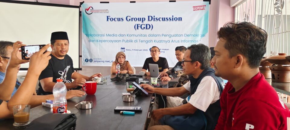 Seputarkuningan.com – Jamparing Reseach ajak insan pers diskusi dengan tema “Kolaborasi media dan Komunitas dalam penguatan demokrasi dan kepercayaan publik di tengah kuatnya arus informasi”. Banyak hal yang dijadikan diskusi, mulai dari anggaran publikasi Pemda Kuningan, perhatian Pemda Kuningan terhadap wartawan hingga survei kinerja Dian-Tuti yang sedang dilakukan oleh Jamparing Reseach, di RM Cibentang, Kuningan, Rabu (11/2/2026).