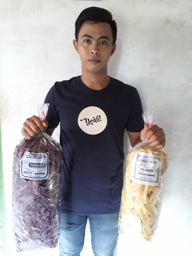 Seputarkuningan.com – Memulai berusaha sejak dini dengan modal minim sungguh tak mudah. Apalagi beberapa kali gagal. Namun berkat kemauan keras, termasuk meniru mereka yang sukses, membuat Muhammad Irfan Rifa’i (25), warga Desa Sukadana Kecamatan Ciawigebang Kabupaten Kuningan kini dapat memiliki usaha rumahan yang mampu meraup keuntungan jutaan rupiah. Usahanya adalah membuat kripik pisang yang dikemas dan bermerk “PANDASA”.