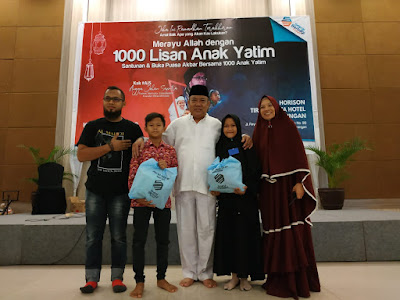 Acara berakhir pukul 19.30 WIB dengan berbagi santunan dan godybag/bingkisan yang telah disediakan oleh panitia dari hasil pengumpulan donasi berbagai pihak. (Elly Said)