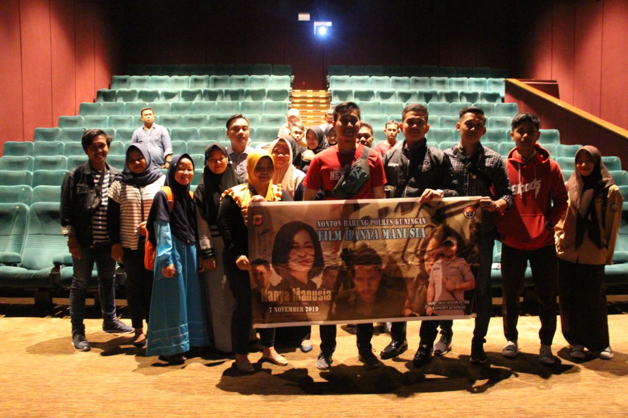 Seputarkuningan.com – Sebanyak 50 anggota Jajaran Polres Kuningan bersama Pokja Wartawan Polres Kuningan dan masyarakat, Kamis (7/11/2019) melaksanakan nonton bareng film berjudul Hanya Manusia garapan Mabes Polri Divisi Hubungan Masyarakat di bioskop salah satu mal di Kota Cirebon.