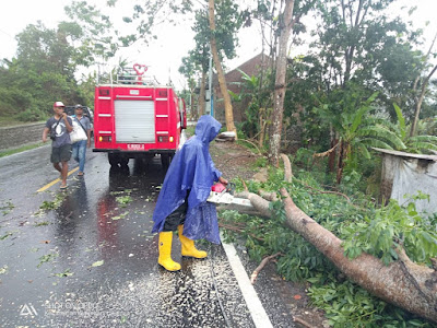 pohon tumbang, jika ada pohon yang tidak kuat menahan angin kencang sebaiknya