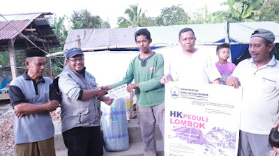 Bantuan tersebut diserahkan langsung oleh H. Sanwani SH, Ketua Tim HKPU didampingi Ust. Lalu Heri Afrizal, MA dan Ustadzah Ina Nur Fitriana, Lc Alumni HK yang tinggal di Lombok.
