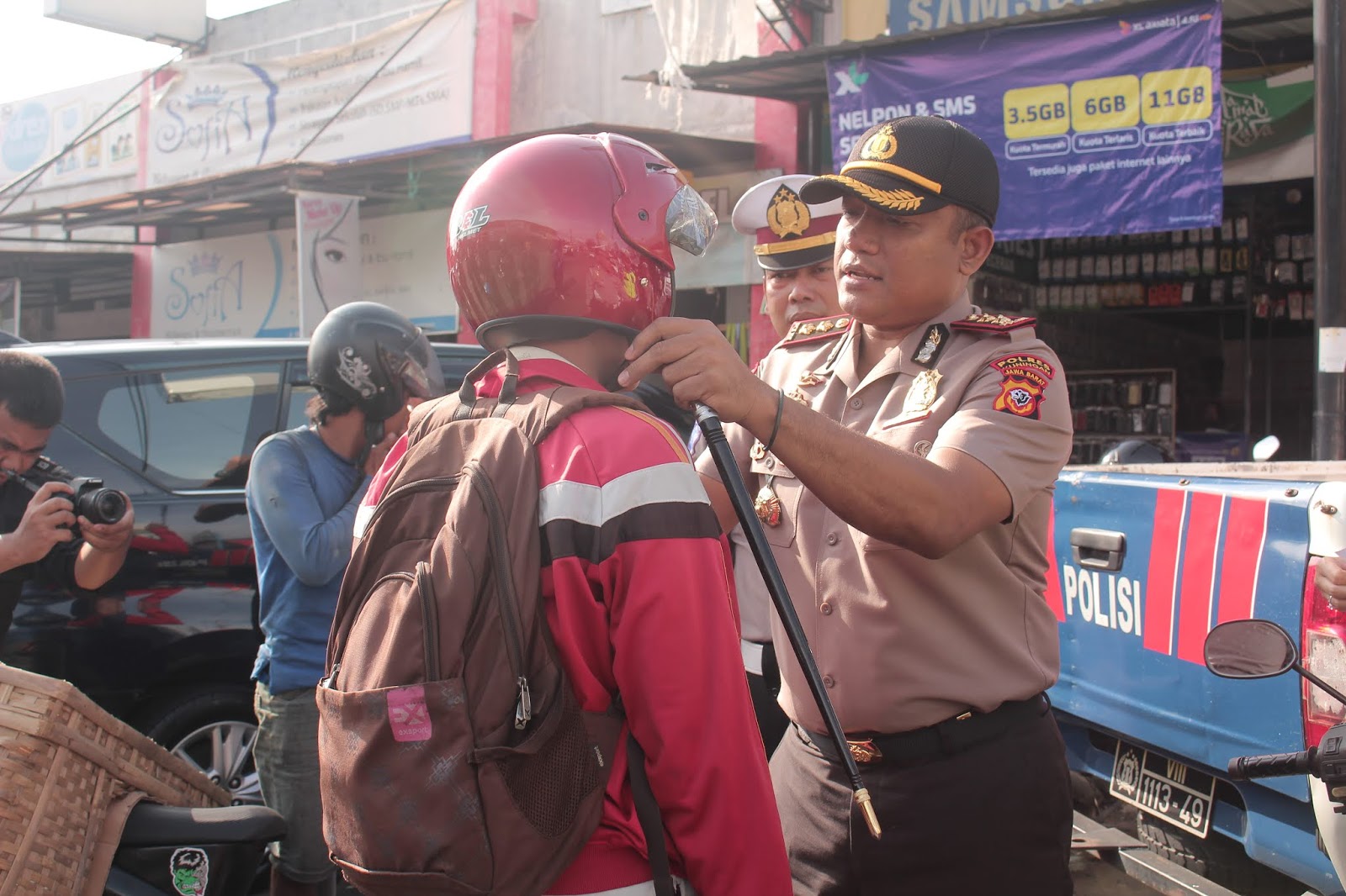 ” Hari ini, kami memberikan teguran saja. Jika besok-besok masih tidak menggunakan helm akan kami tilang,” pungkas Kasat. (Elly Said)