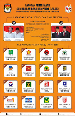 “Seluruh parpol dan tim kampanye capres sudah datang melaporkan penerimaan sumbangan dana kampanye pada hari ini,” kata Asep di kantor KPU Kuningan, Kamis (3/1/2019).