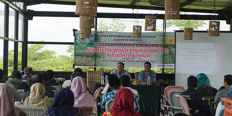 Seputarkuningan,com – Dinas Ketahanan Pangan dan Pertanian Kabupaten Kuningan menggelar rapat evaluasi dan rencana tindak lanjut kegiatan Pekarangan Pangan Lestari (P2L) di Kabupaten Kuningan, Kamis (7/12/2023) di Bubulak Food and View Resto Cisantana Kuningan. Hadir dalam kegiatan Kepala Diskatan Dr. Wahyu Hidayah, M.Si, Ustad Dudung (Tenaga Ahli Anggota DPR RI Komisi IV K.H Asep Ahmad Maoshul Affandy,S.Sy), Koordinator Jabatan Fungsional Diskatan, Kepala UPTD KPP Garawangi, Kuningan, Ciawigebang, Jalaksana, Darma, Kadugede, Koordinator BPP Garawangi, Kuningan, Ciawigebang, Jalaksana, Darma, Kadugede, Penyuluh BPP Garawangi, Kuningan, Ciawigebang, Jalaksana, Darma, Kadugede, Perwakilan Desa/Kelurahan kelompok penerima manfaat.